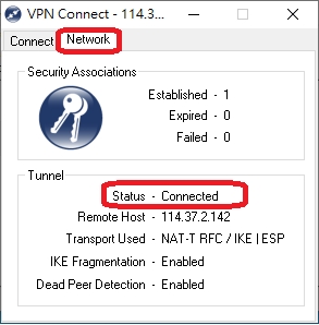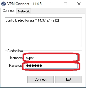 h. Click VPN profile, input user name, and password, and click Connect button.
