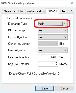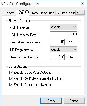 e. Authentication select Mutual PSK+XAuth and click the Save button.