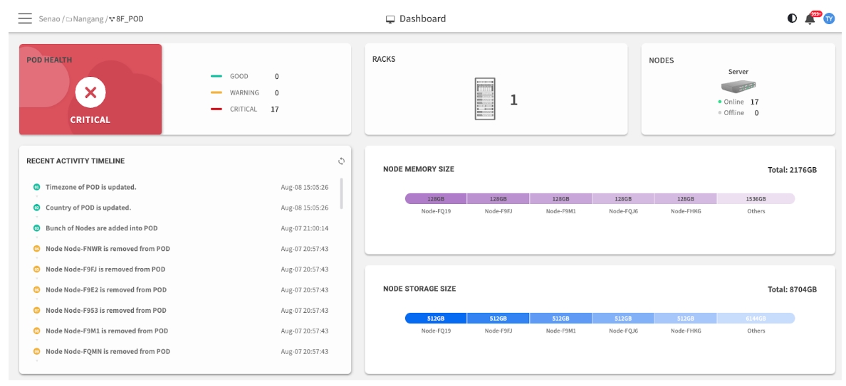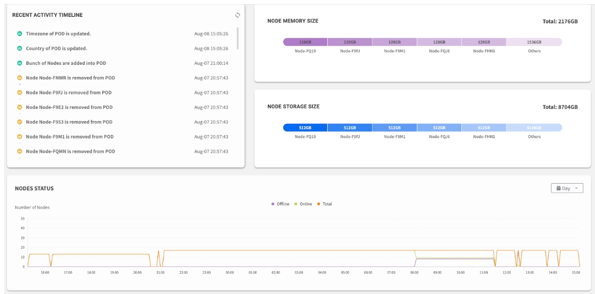 • Nodes: Total nodes in this POD with Online vs. Offline breakdown
