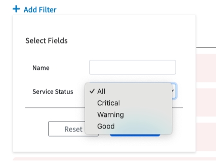 Filter the list by Name or Service Status