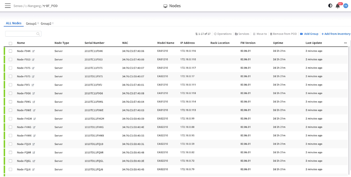Your command center for viewing, organizing, and performing powerful batch operations on all nodes within your POD.