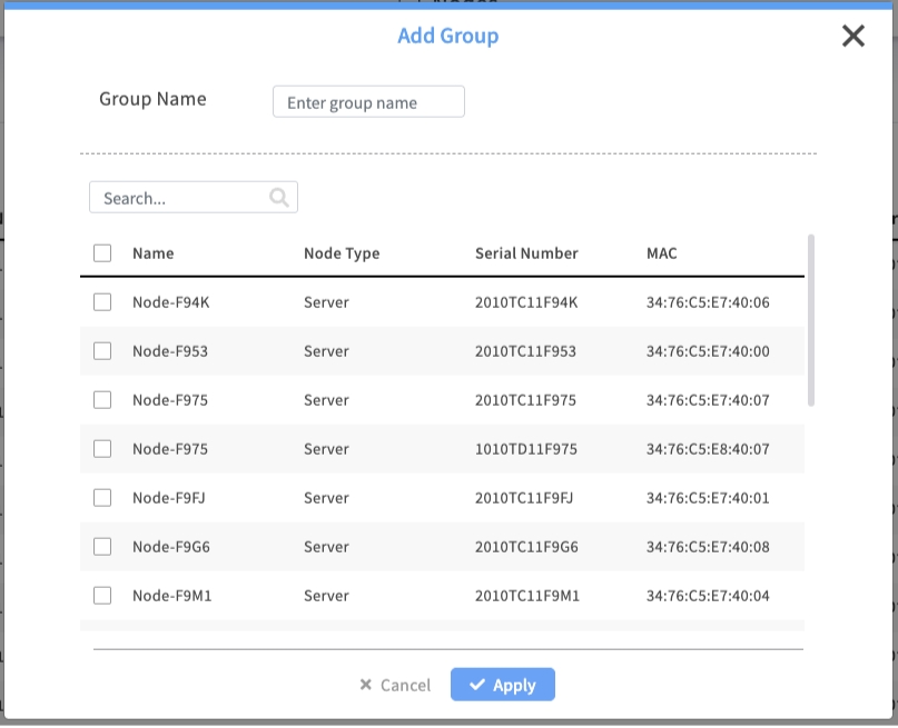 Search Bar: Use the search bar at the top to instantly find a node by its Name, Serial Number, or IP Address