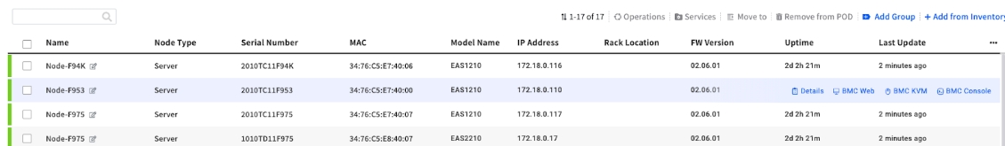 Remove from POD: Returns the selected nodes to the unassigned System > Inventory list. This un-manages the node.