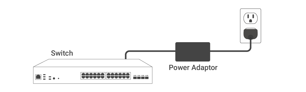Connect the Power Adapter to the back of the Switch, and then plug the Power Cord into the power outlet.
