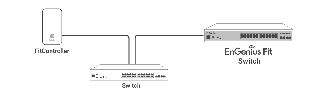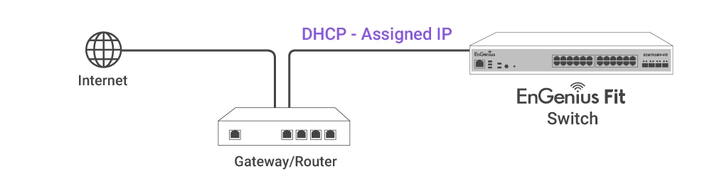 Connect the Ethernet cable from the EnGenius Fit Switch directly to the DHCP-enabled network, which is the same Layer-2 network as FitController.