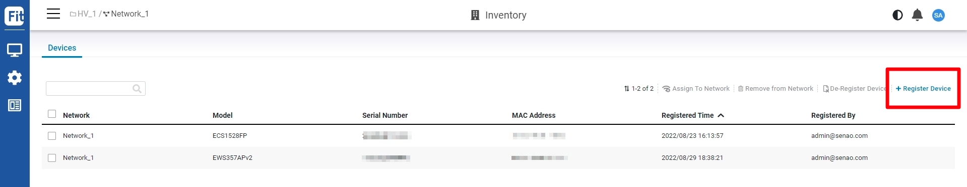 From the Inventory page, Select the newly added device and click "Assign to Network" to add the device to your personalized network.