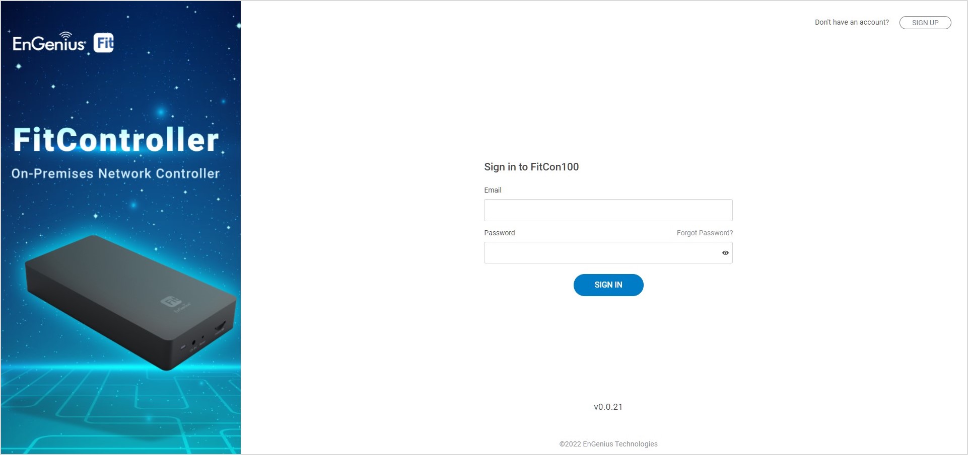 Launch your web browser to access the login page of FitController. Enter the email and password that you created and click Sign In.