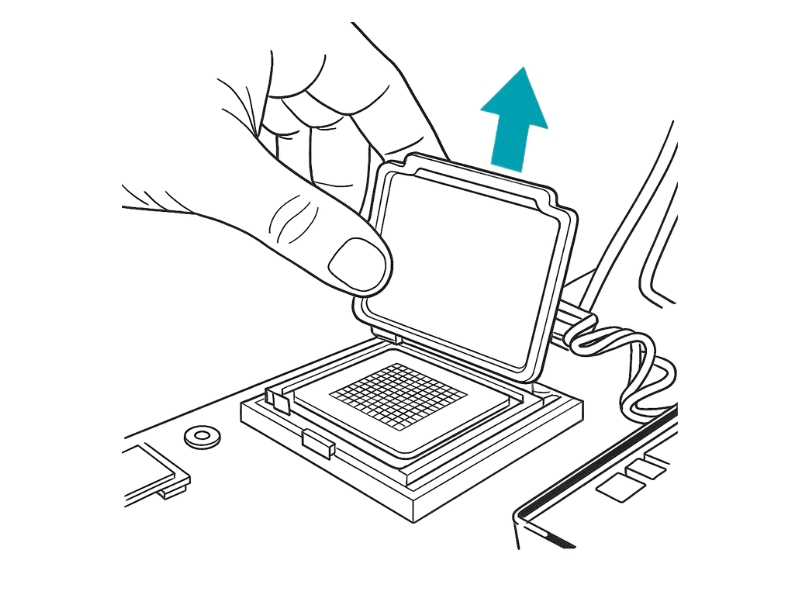 Remove the protective socket cover. If there is a plastic cover on the CPU socket, remove it by gently squeezing the tabs and lifting it off. Keep this cover in a safe place; you'll need it if you ever remove the CPU and need to protect the socket.