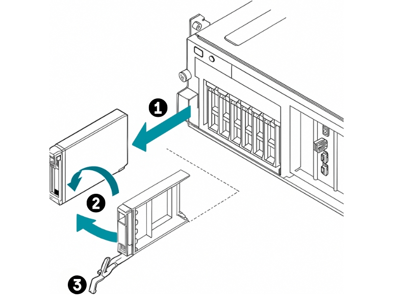 Lock the drive in place. Close the carrier latch until it clicks shut. This secures the drive and ensures a solid connection to the backplane.
