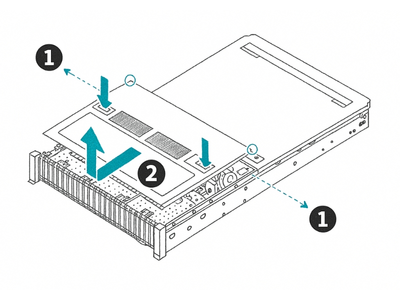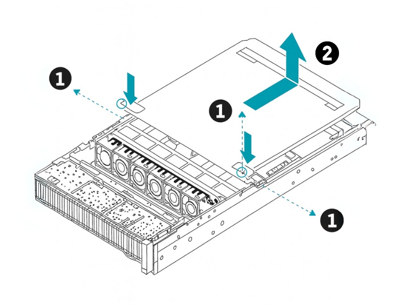 Before you can install or replace any internal components, you'll need to remove the top cover. Make sure you have already shut down the server and disconnected all power and network cables.