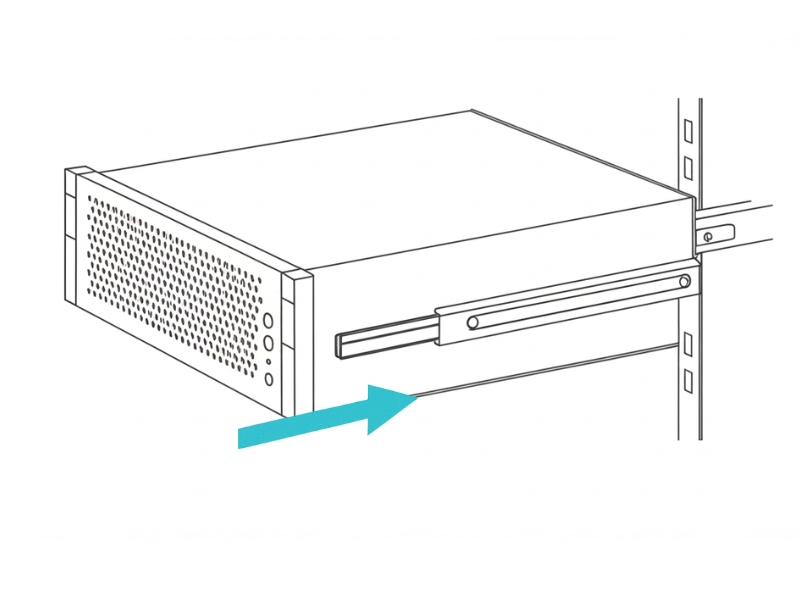 Slide the chassis into the rack. Gently push the chassis into the rack until it is fully seated. You should hear a "click" as the server locks into place.