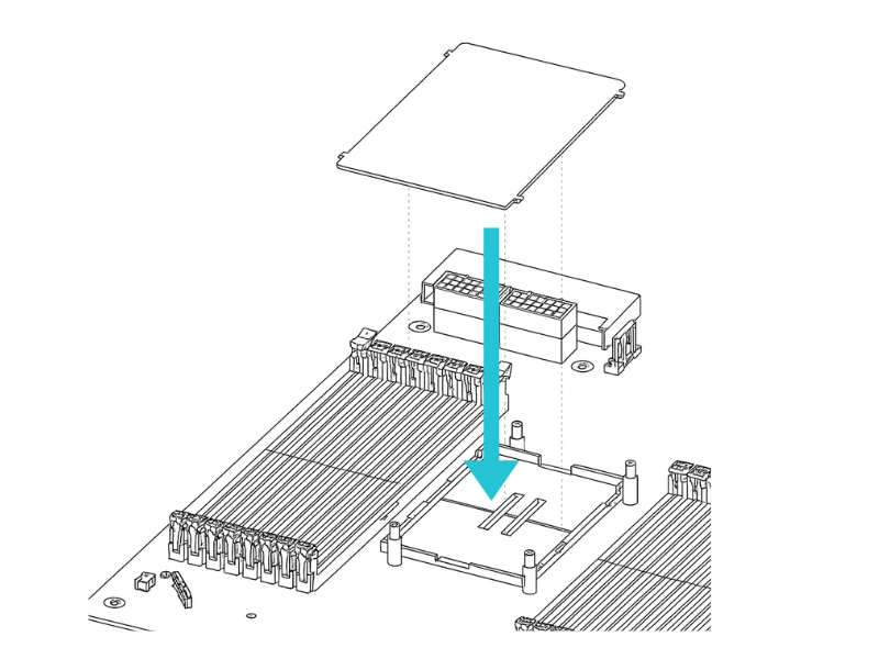 Align the PHM with the socket. Carefully hold the PHM over the socket. Align the guide markings on the PHM with the alignment posts on the motherboard socket.