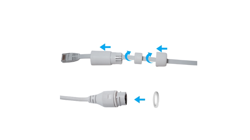 防水コネクターをイーサネットケーブルに取り付けてください。