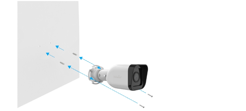 マーキングした位置にドリルで穴をあけ、付属のアンカーおよびネジを使用して、カメラベースを取付け面にしっかりと固定してください。