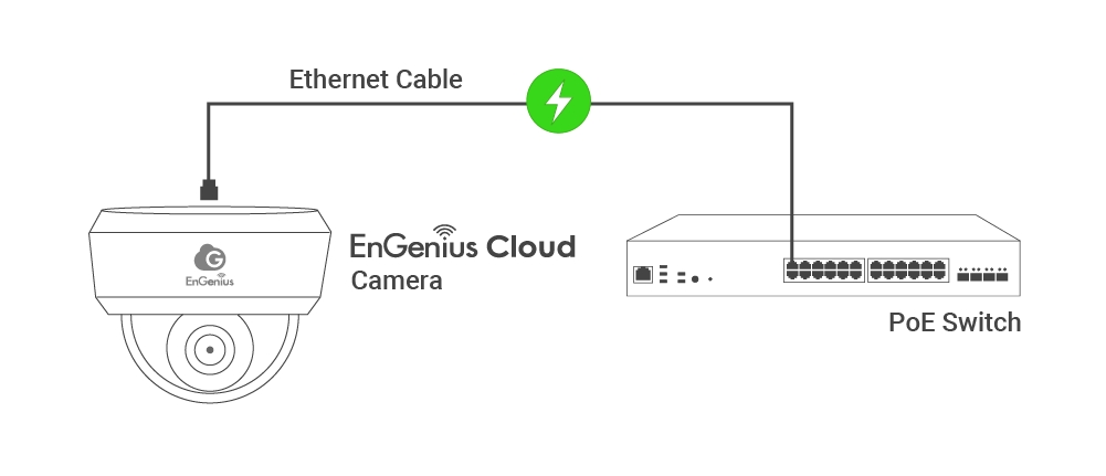 EnGenius Cloud カメラの Ethernet ケーブルを PoEスイッチの PoEポートに直接接続します。