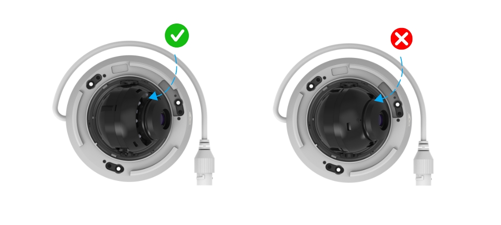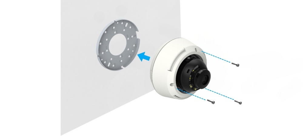 重要:カメラの透明ドーム部分が損傷や傷つくのを防ぐため、設置完了後にのみ保護カバーを取り外してください。