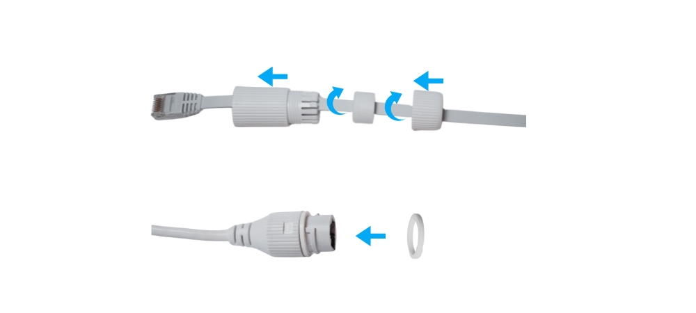 防水コネクターをイーサネットケーブルに取り付けてください。