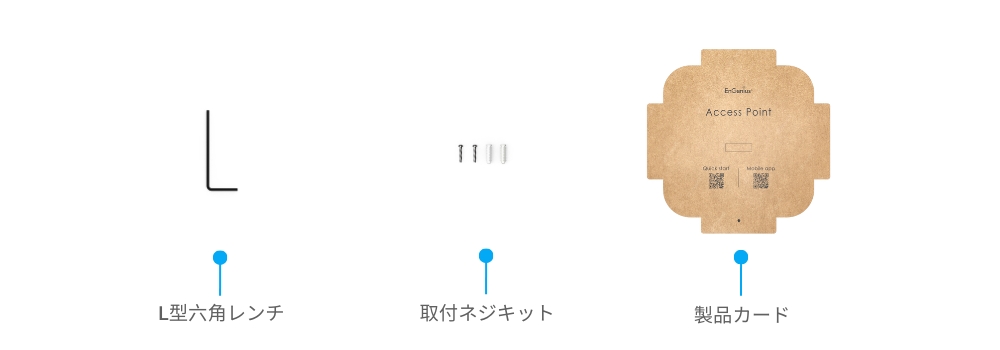このクイックスタートガイドは、Cloud7 4x4x4 アクセスポイント(モデル:ECW536)の設置、ハードウェアの取り付け、および設定を行う手順を案内するために作成されています。