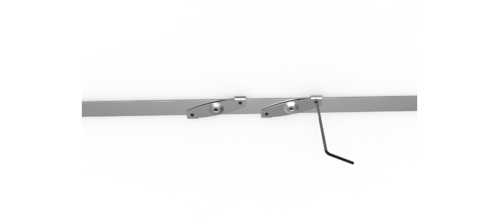 2. Tバーの固定ネジをLレンチで緩めます。Tバーの中央ネジ穴をTレールにマークした位置に合わせ、Lレンチを使用してTバーの固定ネジを締めます。