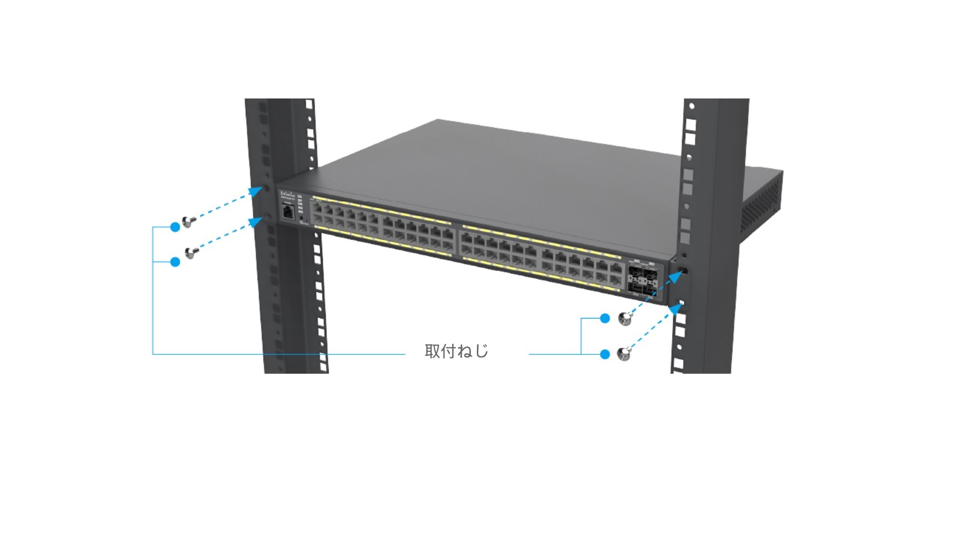 ECS2512FPはラックに取り付けることができます。取り付けるための手順を実行してください: