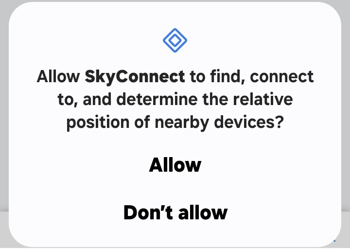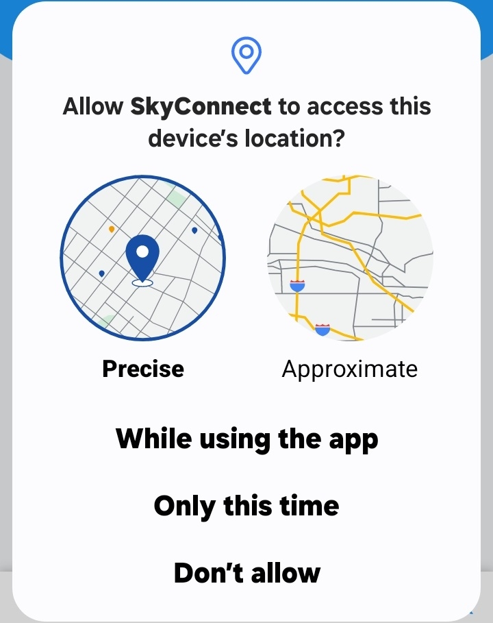 - Allow SkyConnect to access this device's location: this permissions required for generic functioning of the app.