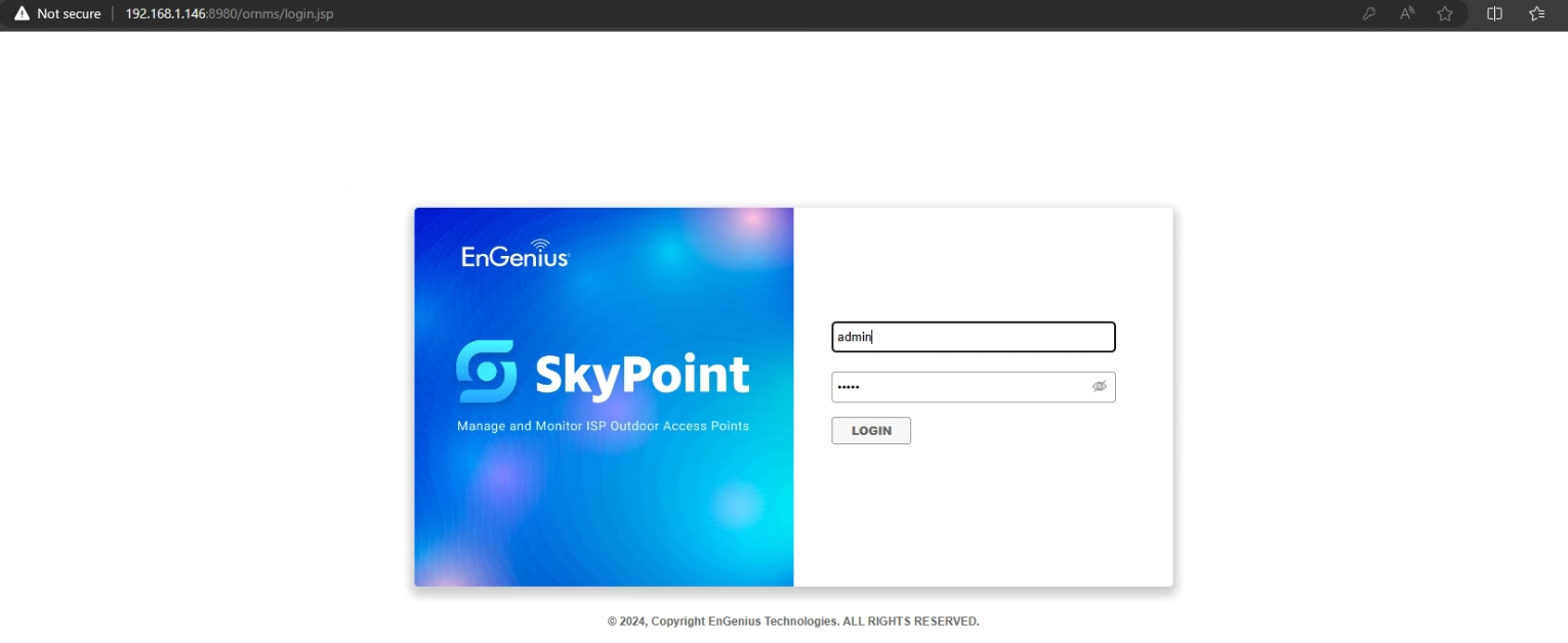 Log in to the SkyPoint network monitoring platform using localhost: (or local IP address) and port number 8980. The default credentials are admin/admin.