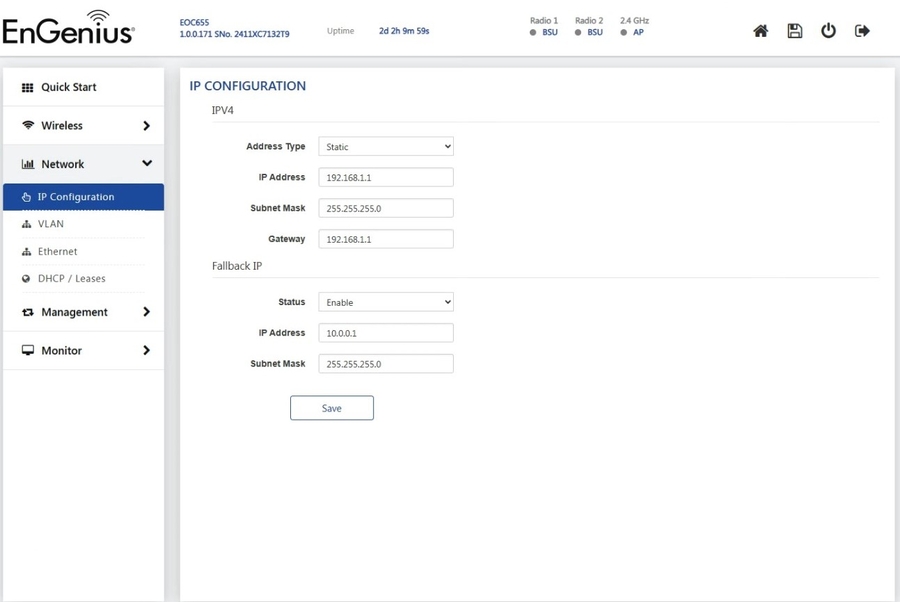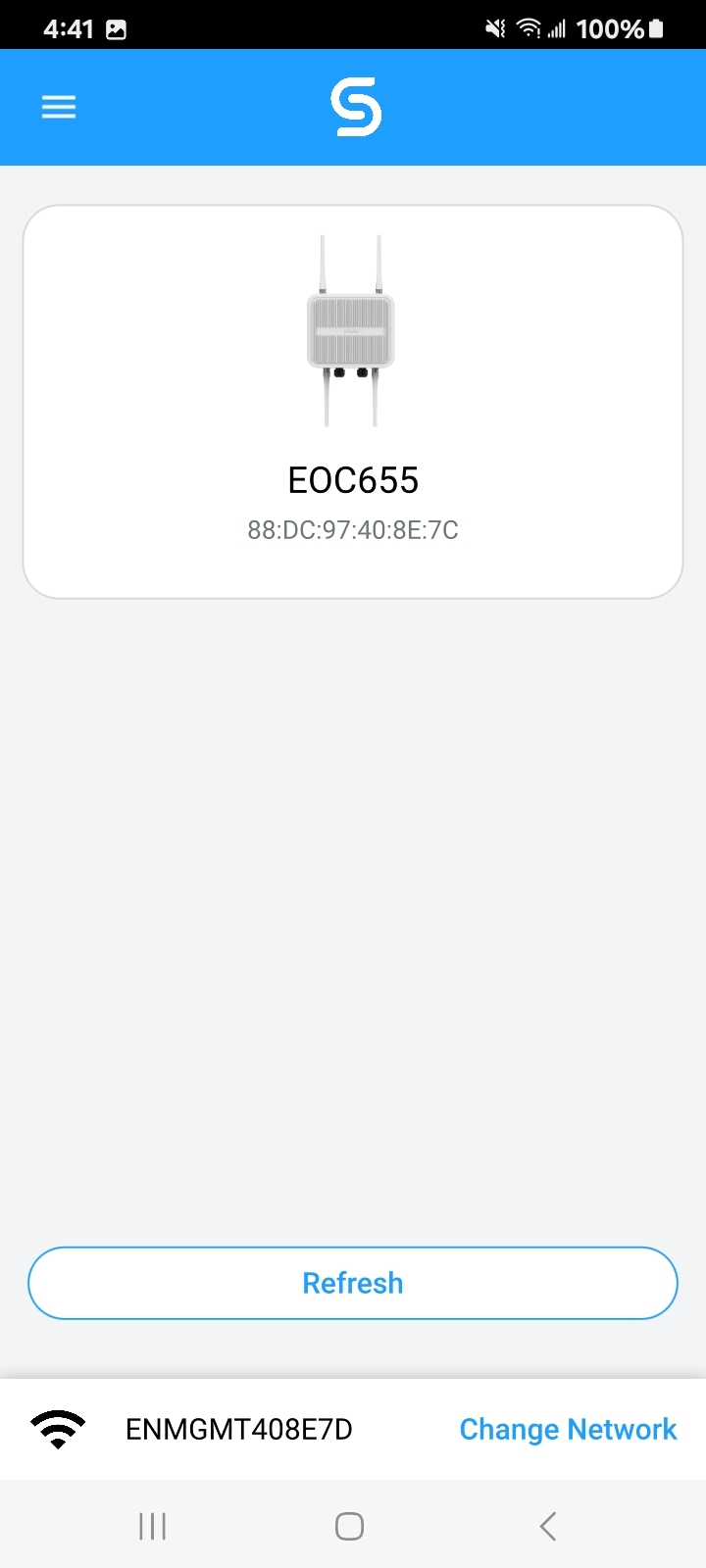 5. The EOC devices will broadcast a 2.4GHz management SSID. The SSID format will be ENMGMT<last 6 digits of the 2.4GHz radio MAC address>. For example, it might look like “ENMGMT408E7D”.