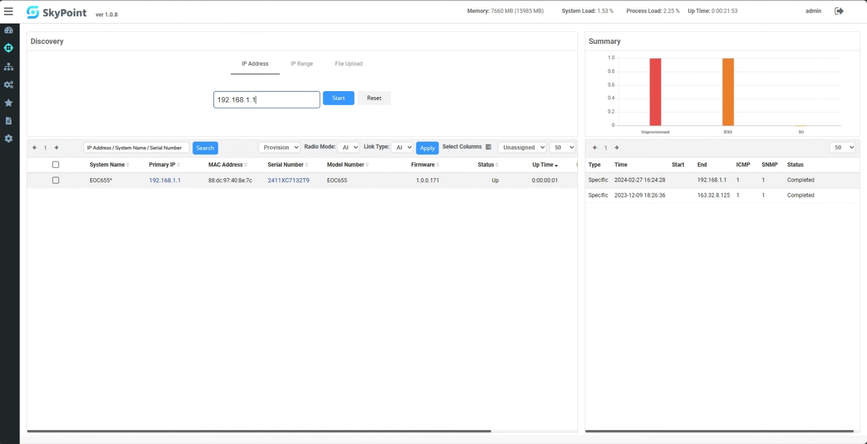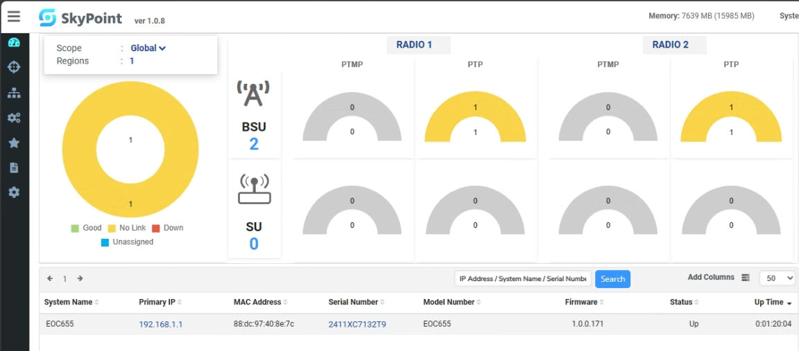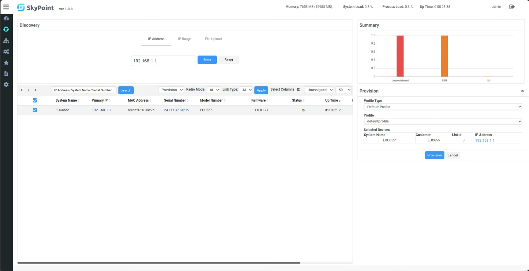 7. After completing the device provisioning, return to the Dashboard. Now, you can start monitoring and managing the EOC devices.
