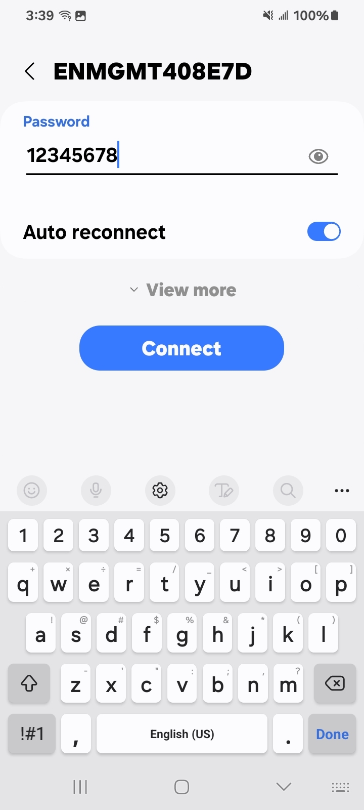 6. The default password for management SSID is “12345678.” Select the network name that matches your device's format from the list of available networks and connects to it.