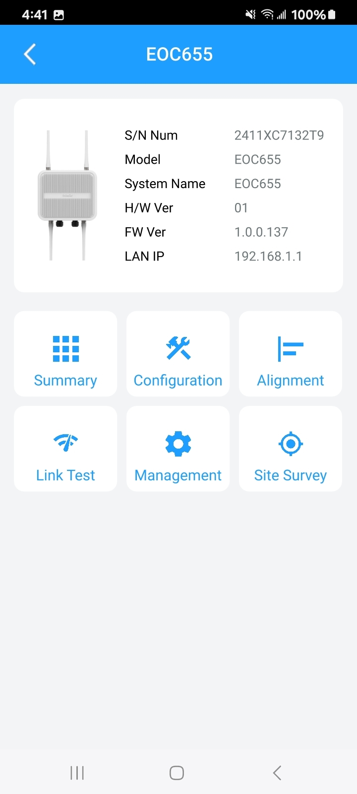 8. Once connected, tap on the device image to start configuring and managing the EOC devices.