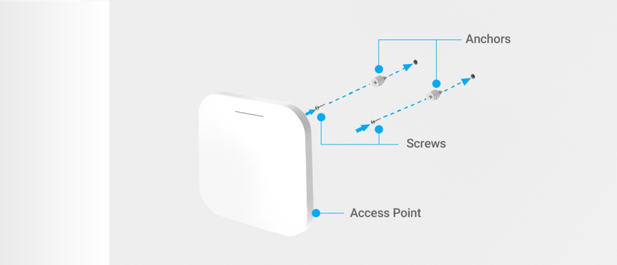 2. Screw the Anchors into the holes until they are flush with the wall; screw the included Screws into the Anchors, but leave the screw head sticking out so you can hang the Access Point on it.
